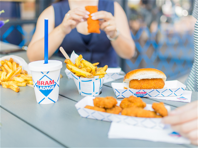 Lekkere malse licht gepaneerde gefrituurde kip met daarbij een verse Bram en een drankje naar keuze.